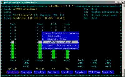 Ze względu na kilka wejść i wyjść oraz sporą ilość ustawień WM8960 konieczne jest posiłkowanie się mikserem audio. W tym celu uruchamiamy mikser ALSA: