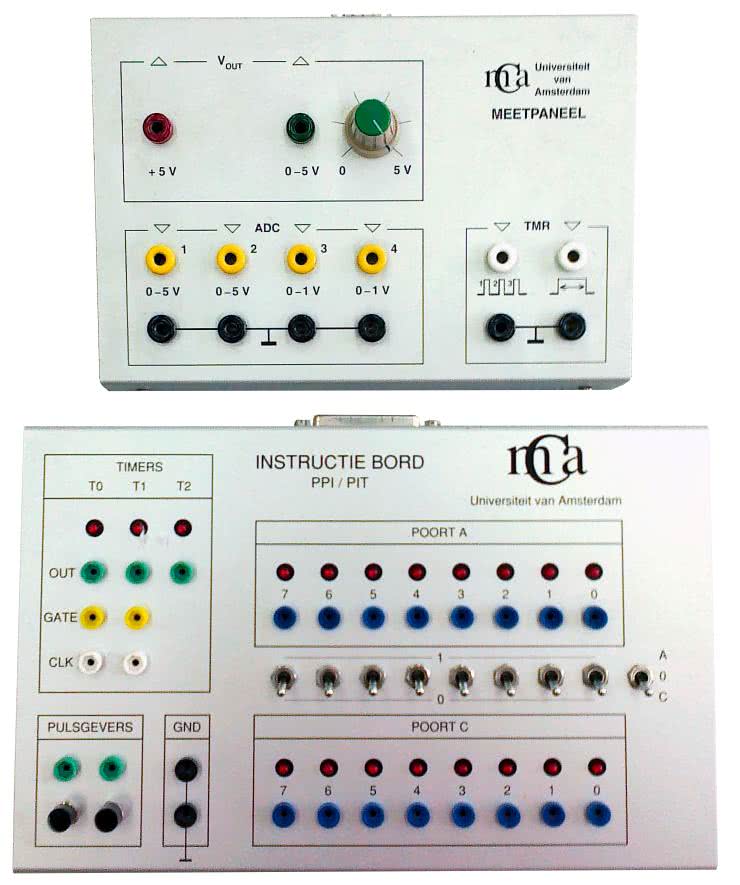 Interfejsy UIA/UIB w postaci kart rozszerzeń (fotografia 1) montowane były w gniazdach ISA komputerów typu IBM PC/XT/AT. Do gniazd interfejsu podłączane były konsolki pomiarowe, do których następnie wpinało się czujniki pomiarowe. Na fotografii 2 można zobaczyć konsolkę analogową z 4 wejściami kanałów przetwornika ADC oraz konsolkę cyfrową, umożliwiającą obsługę prostych sygnałów binarnych.