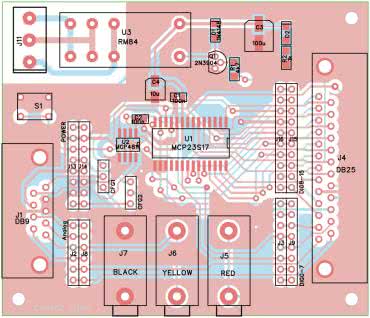Układ należy zmontować na płytce drukowanej, przedstawionej na rysunku 3. Prawidłowo złożone urządzenie działa od razu po zakończeniu montażu i nie wymaga specjalnych zabiegów w celu uruchomienia - należy jedynie pamiętać o odpowiednim ustawieniu zworek.