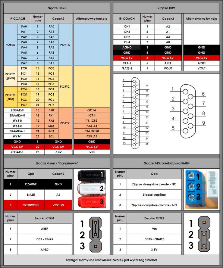 - Interfejsy dla czujników analogowych i konsolek systemu dydaktycznego IP Coach2lib.