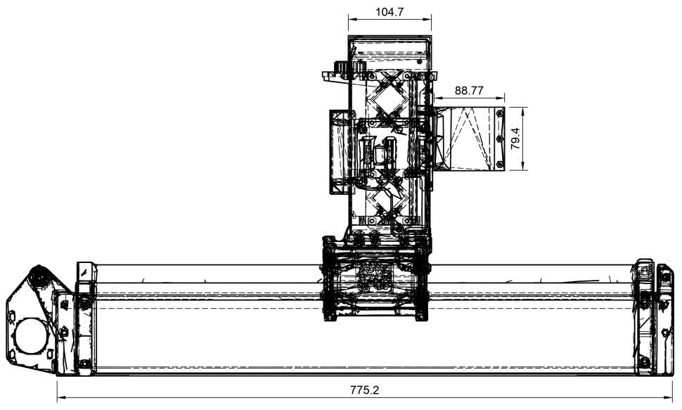 Układ prowadzenia osi X i Y oparto na prowadnicach liniowych MGN15 z wózkami kulkowymi, natomiast w osi Z zastosowano prowadnicę MGN12. Taki zestaw zapewnia niski opór ruchu, dużą precyzję pozycjonowania i trwałość eksploatacyjną. Napęd osi X i Y realizowany jest za pomocą silników krokowych NEMA 23 (2,8 A, 1,26 Nm), sprzężonych z paskami zębatymi GT3 o szerokości 15 mm i kołami 20T. Oś Z oparto na śrubie trapezowej TR12×3, co umożliwia uzyskanie dokładności pozycjonowania na poziomie ok. 0,05 mm.
