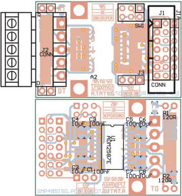 - dla RS485 driver MAX3483 oraz SW1 służący do konfiguracji trybu pracy odbiornika U2.