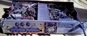 Ponieważ na panelu czołowym było konieczne umieszczenie pokrętła regulacji głośności, to niezbędne było przerobienie płyty czołowej i dostosowanie mocowania dla płytki umieszczonej pod panelem. Zastosowałem również wyświetlacz LCD, więc należało wyciąć otwór pod niego otwór oraz pod wskaźniki wysterowania i siły sygnału. Panel czołowy pokazano na fotografii 1. Przeróbki wymagał również panel tylny - trzeba było w nim wywiercić otwory pod wejścia analogowe, mikrofonowe, słuchawkowe, wentylator i moduł odtwarzacza MP3. Oryginalne otwory pod złącza Euro zostały wykorzystane dla wyjść głośnikowych. Tylną ściankę amplitunera pokazano na fotografii 2.