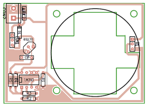 Ponieważ układ LM393 ma wyjście typu otwarty kolektor, konieczny jest użycie rezystora R4 podciągający wyjście do napięcia zasilania. Wzmocnione przez układ U2A napięcie z czujnika temperatury trafia na bramkę tranzystora T1, który wraz ze wzrostem napięcia na bramce zaczyna przewodzić, co w konsekwencji uruchamia wentylator dołączony do złącza CON1. Wzmocnienie tak dobrano, aby radiatory zasilacza miały temperaturę od 45°C do 55°C.