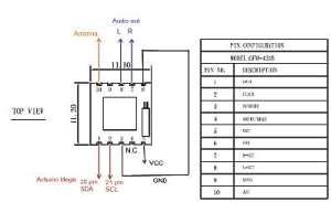 Przekaźniki są załączane poprzez tranzystory T201, T202 diody D201, D202 zabezpiecza tranzystory przed przepięciami powstałymi podczas wyłączania przekaźników. Sygnały sterujące tranzystorami pochodzą ze złącza CON209. Kolejnym elementem znajdującym się na płycie głównej jest tuner FM oparty na module z układem TEA5767 o oznaczeniu GFM420 (rysunek 13). Pomimo niewielkich wymiarów moduł ma niezłe parametry i prosty sposób sterowania. Sygnał antenowy poprzez kondensator 82 pF jest doprowadzony do złącza CON204 i trafia na wyprowadzenie 10 modułu. Z wyprowadzenia 9 wychodzi sygnał MPX i jest podawany do wzmacniacza złożonego z tranzystora T203, rezystorów R212, R213, C211 i kondensatora C212, a następnie na wejście procesora RDS.