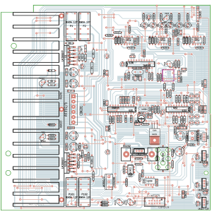 Na płycie głównej umieszczono wszystkie elementy toru audio razem ze wzmacniaczem mocy, modułem radia FM oraz dekoder RDS i detektor napięć zasilania.