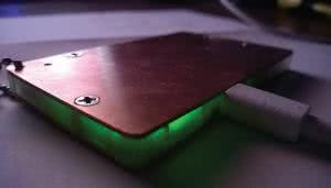 Laminat, na którym zostały przylutowane elementy elektroniczne, stanowi również obudowę, co pomimo zastosowania modułów, a nie samych układów scalonych sprawia, że całość jest dość cienka. Urządzenie jest zbudowane na tak zwaną "kanapkę". Pomiędzy dwoma warstwami laminatu miedzianego umieszczono ramkę wykonaną z pleksi, która pełni rolę dystansu, boków obudowy i przy okazji doskonale rozprasza światło emitowane z diod LED (fotografie 4 i 5).