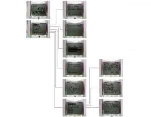 Przy wpisywaniu danej do pamięci najpierw określamy numer banku a następnie numer bajtu w wierszu. Zapisanie całego banku odpowiada wyświetleniu jednego wiersza na wyświetlaczu. W trybie tekstowym, odpowiada to wyświetleniu pojedynczej linijki tekstu. Każdy bajt pamięci RAM jest wyświetlany jako pionowy pasek składający się z 8 pikseli.