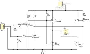 Sterowanie silnika głównego robota mobilnego zostało przeze mnie zrealizowane poprzez zastosowanie układu typu mostek H. Zastosowałem tranzystory MOSFET, dwa z kanałem typu P, dwa kolejne z kanałem typu N, zgodnie ze schematem na rysunku 14.