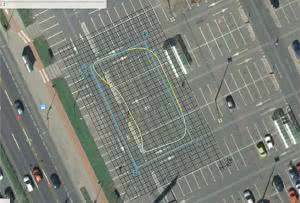 Test polegał na przejechaniu trasy w kształcie prostokąta (o wymiarach: 14×23 metry) określonego przez cztery punkty (rysunek 15). Punkty te zostały wprowadzone ustawiając pojazd w kolejnych lokalizacjach B, C, D, A i zapisując aktualne położenie GPS korzystając z wbudowanego interfejsu użytkownika. Po takim zaprogramowaniu trasy pojazd ustawiłem w punkcie A, z którego wystartował w stronę punktu B, następnie C, D, kończąc wrócił do punktu A i tam się zgodnie z planem zatrzymał.