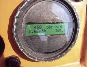 Na fotografii 2 pokazano obrotomierz zamontowany w desce rozdzielczej. Urządzenie nie jest zbyt atrakcyjne wizualnie, ponieważ jest w nim zamontowany tylko wyświetlacz LCD. W czasie projektowania miałem zastosować skalę w postaci zaokrąglonej skali z diod LED, lecz podczas prac polowych w słoneczne dni była by ona niewidoczna.