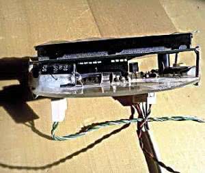 Po poprawnym skalibrowaniu pora na umieszczenie urządzenia w obudowie. Aby wykorzystać otwór w desce rozdzielczej po starym obrotomierzu postanowiłem całość umieścić w obudowie po obrotomierzu mechanicznym. Aby to zrobić trzeba rozebrać mechaniczny obrotomierz rozginając ramkę przytrzymującą szkło zegara. Po zdjęciu szkła trzeba wymontować mechanizm poprzez odkręcenie dwóch śrub M4 z tyłu zegara.