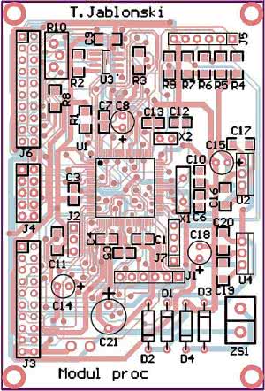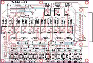 Schemat montażowy modułu analogowego pokazano na rysunku 6. Jest ona zbudowana z elementów do montażu przewlekanego. Warto zastosować podstawki precyzyjne pod układy LM324. Można je będzie łatwo wymienić w przypadku uszkodzenia.