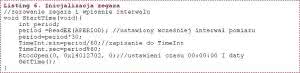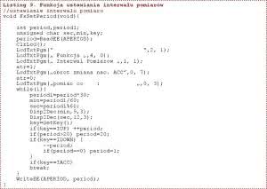 Funkcja ustawiania interwałów pomiarów pozwala na ustawienie i zapamiętanie interwału od 30 sekund do 10 minut z rozdzielczością 30 sekund (listing 9).