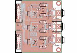 Układ zmontowano na niewielkiej płytce drukowanej, której schemat montażowy pokazano na rysunku 3. Liczba wlutowanych układów scalonych jest zależna od potrzeb - na wyjściu jednego przetwornika D/A są dostępne dwa kanały. W module prototypowym zastosowano 3 układy WM8762, więc uzyskano w ten sposób 6 kanałów.