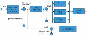 Algorytm działania programu sterownika jest stosunkowo prosty (rysunek 2). Po rozpoczęciu wykonania programu inicjalizowane są wszystkie układy peryferyjne mikrokontrolera, a następnie jest sprawdzana przyczyna rozpoczęcia działania programu. Jeśli jest nią wyłączenie zasilania, program natychmiast przechodzi do uśpienia mikrokontrolera.