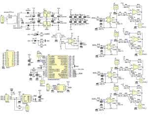 Sygnał PWM z wyprowadzenia 15 mikrokontrolera (etykieta OC1A) jest uśredniany za pomocą filtru RC (rezystor R1, kondensator C13). Na wyjściu filtru może pojawić się napięcie z zakresu 0...5 V, dlatego jest ono dwukrotnie wzmacniane przez U5A.