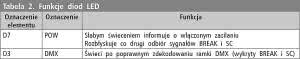 Stan pracy urządzenia jest sygnalizowany za pomocą diod LED. Ich funkcje opisano w tabeli 2.