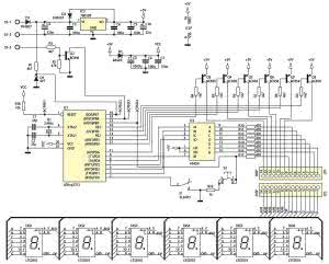 Na rysunku 1 pokazano schemat ideowy rejestratora. Wykonano go w oparciu o mikrokontroler ATtiny2313 taktowanym rezonatorem kwarcowym o częstotliwości 2 MHz. Zajmuje się on zliczaniem czasu i obsługą wszystkich funkcji urządzenia. Za pośrednictwem układu IC2 (4543) steruje katodami wyświetlaczy, zaś anodami steruje przez tranzystory - oszczędzamy w ten sposób piny mikrokontrolera.