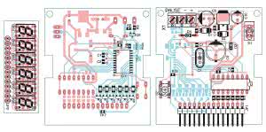 Schemat montażowy rejestratora pokazano na rysunku 2. Składa się on z dwóch płytek drukowanych: głównej i wyświetlacza. Całość zaprojektowano w taki sposób, aby zmieściła się w obudowie KM-61. Ta obudowa ma specjalny kształt i zatrzaski umożliwiające łatwe umieszczenie jej w panelu większego urządzenia. Montaż zaczynamy od mikrokontrolera i elementów SMD.