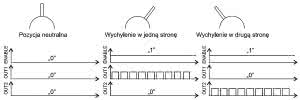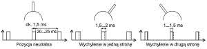 Zwykle, w popularnych aparaturach, te impulsy są powtarzane co 20...25 ms - pokazano to na rysunku 1. Typowe impulsy sterujące silnikiem pokazano na rysunku 2. Jest to sytuacja przykładowa, zworki umożliwiają dodatkową konfigurację tych wyjść.