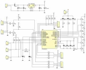 Schemat ideowy znajduje się na rysunku 4. Głównym elementem jest dobrze znany mikrokontroler ATmega8 firmy ATMEL. Źródłem sygnału zegarowego jest wewnętrzny generator, stabilizowany kwarcem o częstotliwości rezonansowej 16MHz.