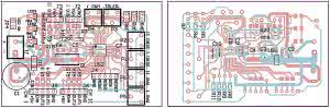 Układ został zmontowany na dwustronnej płytce drukowanej pokazanej na rysunku 5. Elementy montowane są po obydwu stronach płytki, ponadto, niektóre z nich są przystosowane do montażu przewlekanego, zatem należy mieć baczenie na kolejność ich lutowania: najpierw SMD (po obydwu stronach), a THT na końcu (od najniższego do najwyższego).
