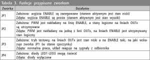 Zworki JP1-JP3 służą konfiguracji wyjść sterujących. Rolę pomocniczą pełnią diody LED1-LED3. Ich funkcje opisano w dalszej części artykułu, a odłączyć je można zworką JP4.