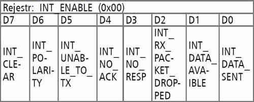 - Bit INT_DATA_AVAIBLE uruchamia (gdy ustawiony) generowanie przerwań w przypadku odebrania pakietu danych.