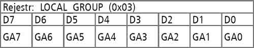 Wartość rejestru LOCAL_GROUP określa 8-bitowy adres grupy, do której przyporządkowano modem PLC (w przypadku odbioru wiadomości typu multicast).