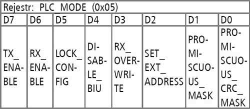 Rejestr PLC_MODE określa podstawowe właściwości sprzętowe modemu PLC. Poszczególne bity tegoż rejestru mają następujące znaczenie funkcjonalne: