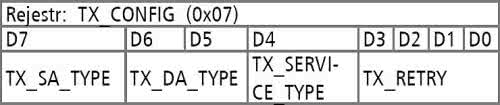 - Bit TX_SA_TYPE określa rodzaj adresu urządzenia źródłowego (wysyłającego dane): 0 → adres logiczny, 1 → adres fizyczny.