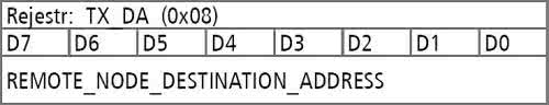 Rejestr TX_DA określa adres urządzenia docelowego (jeśli wybrany wcześniej rodzaj adresu rządzenia docelowego to adres logiczny lub grupowy) lub też definiuje najstarszy bajt 64-bitowego, fizycznego adresu urządzenia docelowego. W tym drugim wypadku, kolejne rejestry o adresach 0x09...0x0F definiują pozostałe bajty adresu fizycznego.