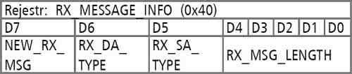 Rejestr RX_MESSAGE_INFO udostępnia informacje na temat właściwości odebranego pakietu danych. Poszczególne bity tegoż rejestru mają następujące znaczenie funkcjonalne: