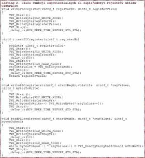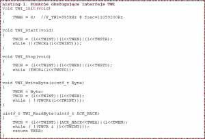 Ciała funkcji odpowiedzialnych za obsługę interfejsu TWI pokazano na listingu 1.