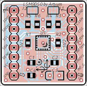 Niestety, montaż układu LSM9DS0 na PCB metodą "domową" jest bardzo trudny ze względu na małe i trudno dostępne pady. Z tego powodu może sprawić znaczne trudności osobom niemającym wprawy w montażu układów elektronicznych.