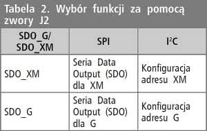 Pierwsza para umożliwia wybór interfejsu komunikacyjnego dla G oraz XM zgodnie z tabelą 1. Druga para spełnia dwa zadania - umożliwia ustawienie adresu lub wyprowadzenie danych za pomocą odpowiedniego interfejsu komunikacyjnego (tabela 2).