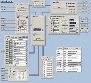 Przetworniki A/C i C/A są wyciszone, i wyłączone, ponieważ nie są wykorzystane w projekcie. Aktywne są porty szeregowe, skonfigurowane do pracy w trybie I²S. Port wyjściowy pracuje w trybie master. Przetwornik ADC z GPIO ma aktywną 5-bitową histerezę.