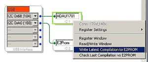 - Zaprogramowanie pamięci programu koniecznej dla samodzielnej pracy DSP, zwora WP zwarta, opcja zapis ostatniej kompilacji do EEPROM (rysunek 13).