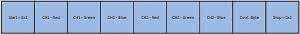 Ramka danych przesyłana pomiędzy aplikacją a mikroprocesorem składa się łącznie z 9 bajtów (rysunek 4). Bajt startu i stopu służy jedynie do synchronizacji ramki. Nastawa koloru jest transmitowana w postaci trzech bajtów w kolejności czerwony, zielony i niebieski dla pierwszego kanału a następnie kolejne trzy dla drugiego kanału. Dodatkowo przesyłany jest jeszcze jeden bajt zawierający bity konfiguracyjne.
