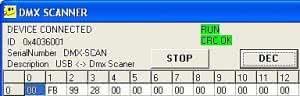 Skaner umożliwia obrazowanie ramek DMX bez ich rejestrowania lub ich zapamiętywanie dla potrzeb analizy tego, co dzieje się w sieci urządzeń. Obrazowane są tryby on/off-line sygnału DMX, a także on/off-line połączenia z USB, które jest wykrywane automatycznie. Skaner może być zasilany z sieci 230 VAC lub portu USB. Zapewniona jest izolacja galwaniczna skanera od komputera.
