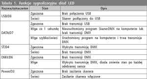 Od teraz dioda D8 świeci, gdy urządzenie komunikuje się z komputerem, natomiast D7 informuje o transmisji danych. Funkcje sygnalizacyjne diod LED opisano w tabeli 1.