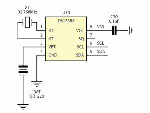 Układ uzupełnia opcjonalny zegar czasu rzeczywistego DS1338 z podtrzymaniem bateryjnym (rysunek 5). Przyporządkowanie wykorzystanych przez HABoard wyprowadzeń Raspberry Pi przedstawia rysunek 6.