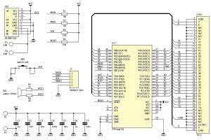Oprócz wyświetlacza, do płytki dołączony jest również piezoelektryczny buzzer. Służy od wydawaniu dźwiękowych komunikatów. Rezystory R5 i R6 ograniczają prąd płynący przez wyprowadzenia mikrokontrolera w chwili jego przeładowywania. Sterowany jest różnicowo, co podwaja amplitudę przyłożonego doń napięcia.