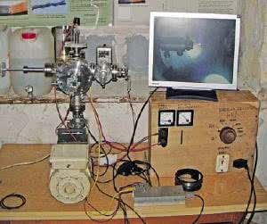 Warto jeszcze dodać, że przepust napięciowy do zasilania wyrzutni jest ruchomy i może być uważany za manipulator y. Wskutek niecentryczności katody umieszczonej na tym przepuście może on w pewnych przypadkach służyć jako manipulator y, z (poprzez obracanie o pewien kąt możliwe jest przemieszczanie się katody w osi z).