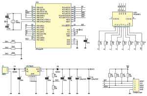 Schemat ideowy licznika czasu pracy pokazano na rysunku 1 Najistotniejszy jest w nim mikrokontroler ATmega48 odpowiedzialny za obsługę wyświetlacza, pamięci i odliczanie czasu. Jest on taktowany przebiegiem o częstotliwości 4 MHz stabilizowanej za pomocą rezonatora kwarcowego. Złącze J2 służy do zaprogramowania pamięci Flash, bitów zabezpieczających oraz zerowania licznika, o czym dalej. Rezystory R3...R6 uzupełniają wbudowanie w mikrokontroler rezystory podciągające.