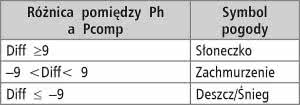 Oczywiście, prognozy takie mogą być obarczone dużym błędem, lecz wykonanie bardziej wiarygodnej prognozy pogody wymagałoby dysponowania większa liczbą wielkości wejściowych. Dla naszego urządzenia przyjęto następujące wartości kryterialne:
