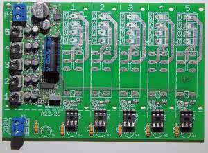 Oprócz cewek przekaźników załączane są również dwie diody LED oraz transoptor. Pierwsza dioda to mała kontrolka SMD niezbędna podczas testowania i ustawianiu sekwencera. Druga kontrolka może być wykorzystana do zamontowania jej np. na panelu frontowym urządzenia po połączeniu przewodami z płytką.