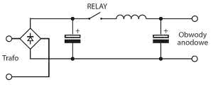 Chciałbym też przypomnieć o sposobie włączania przekaźnika sekwencera w obwody zasilania anodowego w klasycznych układach filtrów wysokiego napięcia z transformatora. Przeważnie składa się on z szeregu obwodów LC lub RC. Należy dołączyć go zgodnie z rysunkiem 5.