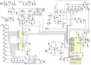 Do mikrokontrolera dołączono elementy filtrujące zasilanie jego bloków (w tym przetwornika analogowo-cyfrowego ADC): kondensatory C13..C15 i dławik L1, rezonator kwarcowy X1 (16 MHz) z kondensatorami C16, C17, dzielnik do pomiaru napięcia zasilania urządzenia z elementami R3, R4, C12 oraz wyświetlacz alfanumeryczny LCD 16x2 znaki (U5) z elementami: R5 (ograniczenie jasności podświetlenia LED), PR1 (regulacja kontrastu LCD) i C18 (odprzężenie napięcia zasilania).